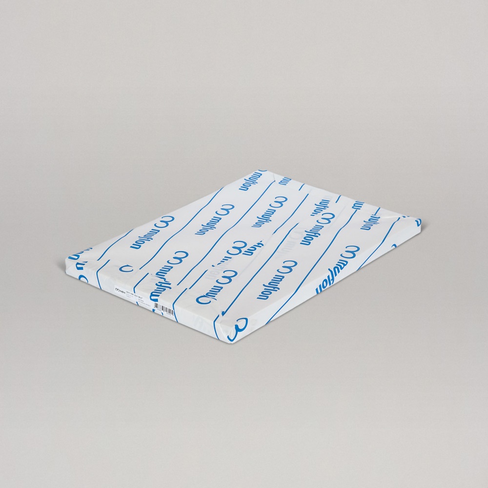 Лицевой материал: C80 - чистоцеллюлозная белая полуглянцевая бумага с односторонним мелованием поверхности